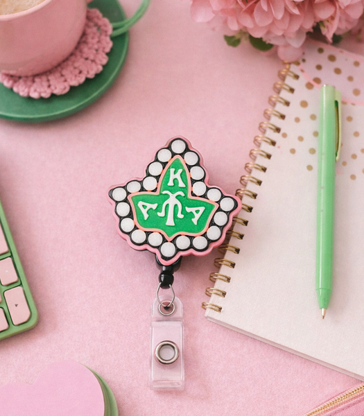 Show your Alpha Kappa Alpha pride in style with this elegant 3D printed AKA badge reel, designed with a classic ivy background, pearl accents, and the AKA emblem centered for a timeless sorority look. 💚💗
