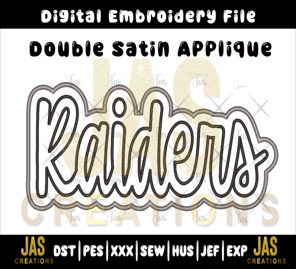 Show your team spirit with this Raiders Double Satin Applique Digital File! This bold and clean applique design is perfect for sweatshirts, t-shirts, hoodies, game day outfits, tote bags, and more. Whether you’re creating fan gear, spirit wear, or custom gifts, this embroidery file will help you achieve a professional, polished look.