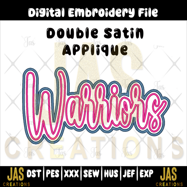 Show off your school spirit with this Double Satin Warriors Applique Embroidery File! Perfect for game day apparel, team gear, or fan spirit wear, this bold design is easy to stitch and gives a professional finish every time.