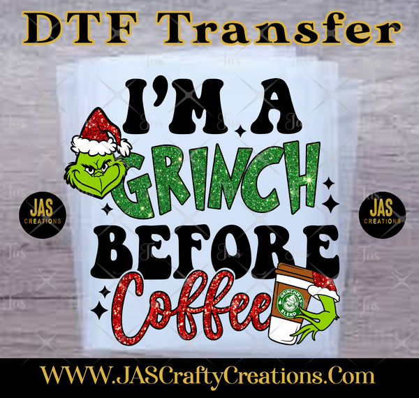 Bring the holiday cheer to your custom apparel with Im A Mean Green Guy Before Coffee DTF Ready to Press Transfer! This vibrant, high-quality transfer makes it easy to create festive T-shirts, sweatshirts, hoodies, and more. Perfect for small businesses, crafters, or DIY holiday gifts — simply press and go!