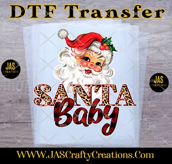 Bring the holiday cheer to your custom apparel with our Santa BABY DTF Ready to Press Transfer! This vibrant, high-quality transfer makes it easy to create festive T-shirts, sweatshirts, hoodies, and more. Perfect for small businesses, crafters, or DIY holiday gifts — simply press and go!