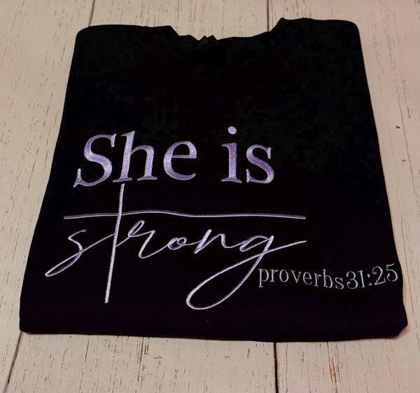 SHE IS STRONG PROVERS  EMBROIDERED SWEATSHIRT